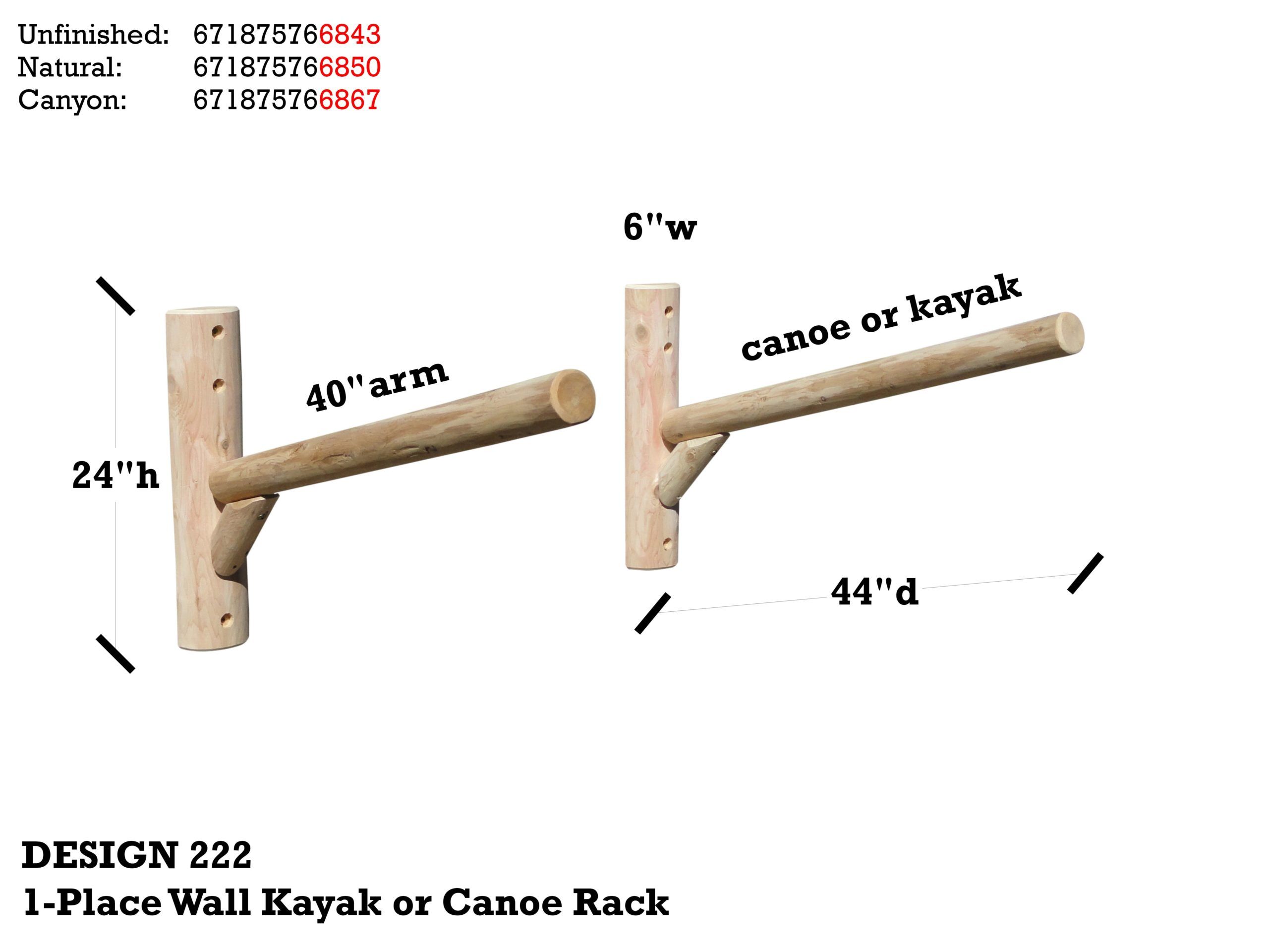 The 1-place Wall-Mount Log Kayak/Canoe/SUP Rack is built with Northern White Cedar from the Upper Peninsula of Michigan. This rack is designed for functionality and aesthetics by lake homeowners. It not only cares for and organizes your boats, but it can also be matched to its surroundings being log construction.