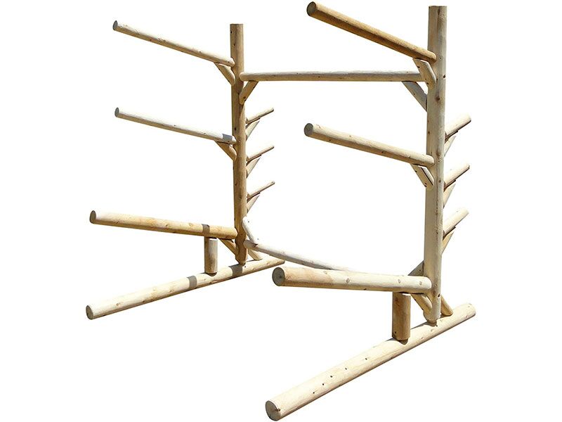 We want you to enjoy your Log Kayak Rack for years to come. To ensure it’s longevity, we recommend that the feet are not in direct contact with the ground, but rather raised and set on landscaping block or a similar product.