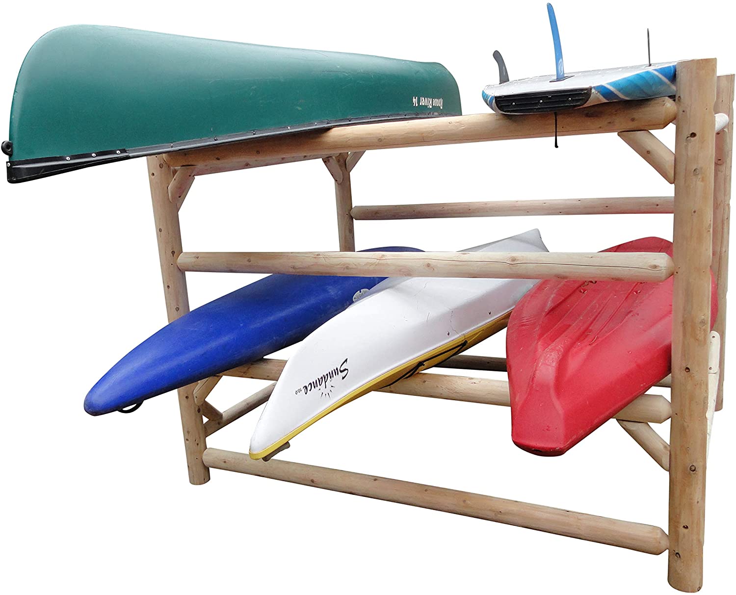 4 Place One Sided Log Kayak Rack