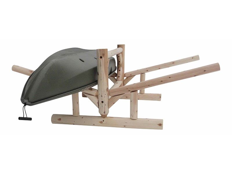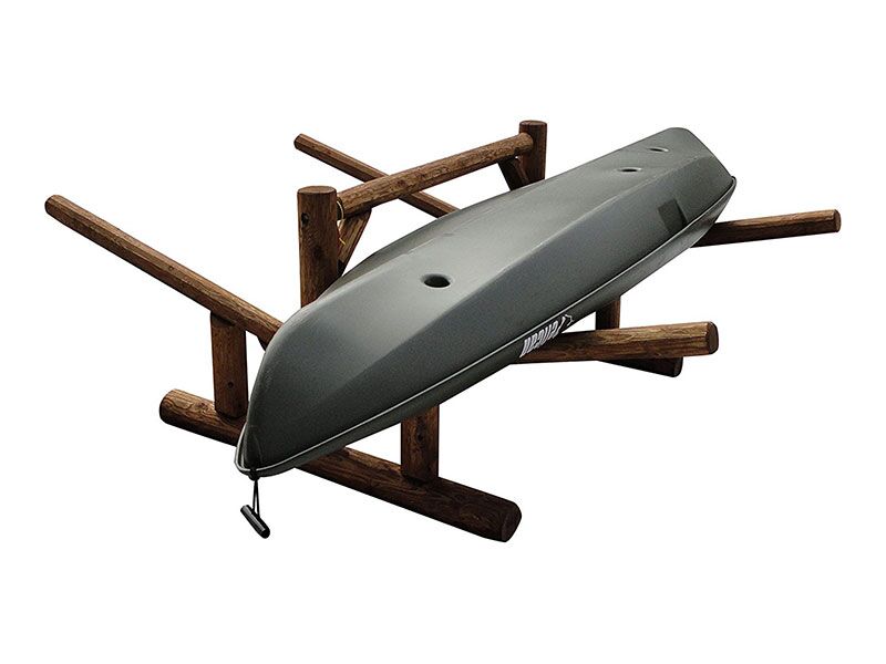 We want you to enjoy your Log Kayak Rack for years to come. To ensure it’s longevity, we recommend that the feet are not in direct contact with the ground, but rather raised and set on landscaping block or a similar product.