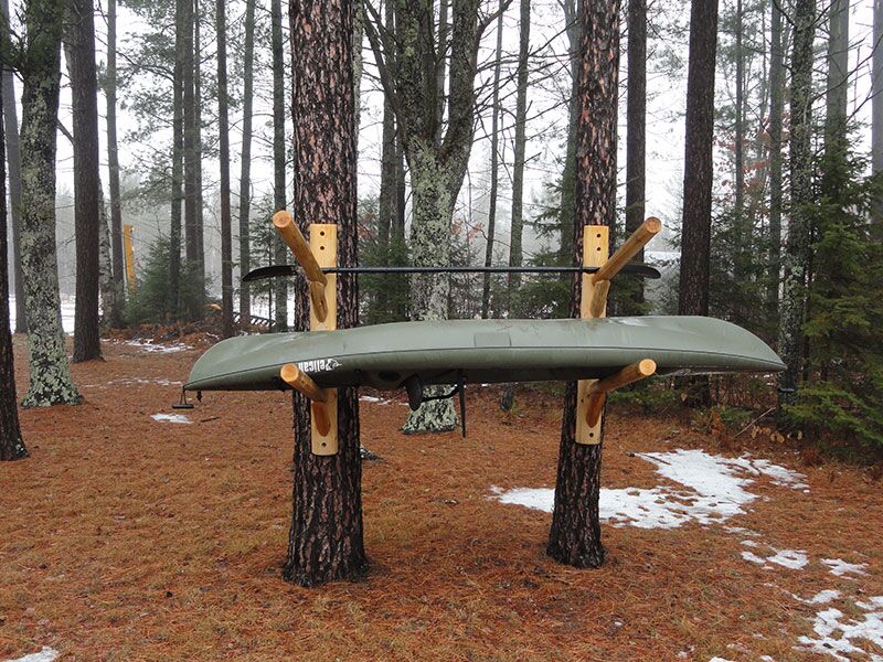 We want you to enjoy your Log Kayak Rack for years to come. To ensure it’s longevity, we recommend that the feet are not in direct contact with the ground, but rather raised and set on landscaping block or a similar product.