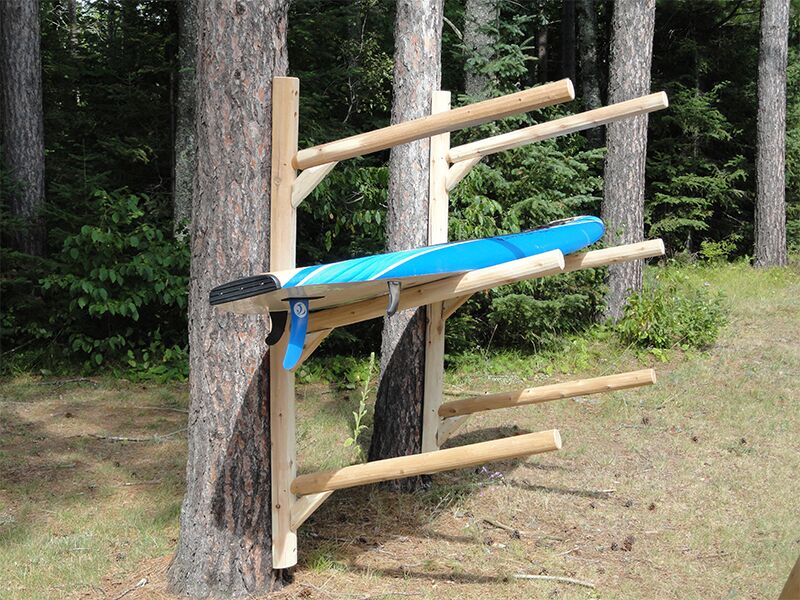 We want you to enjoy your Log Kayak Rack for years to come. To ensure it’s longevity, we recommend that the feet are not in direct contact with the ground, but rather raised and set on landscaping block or a similar product.