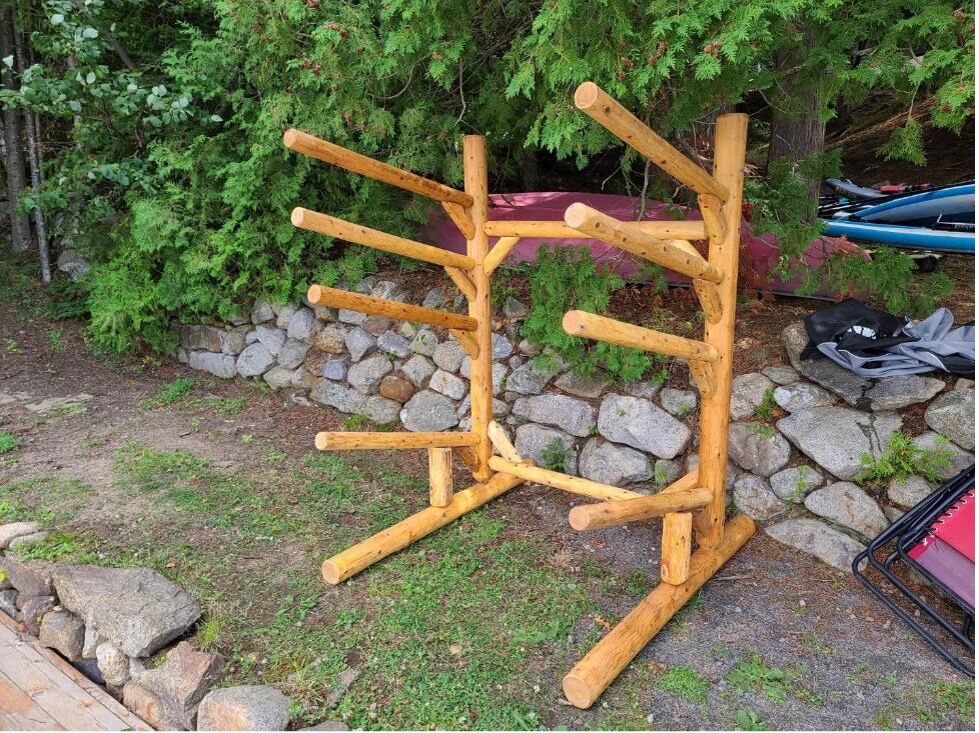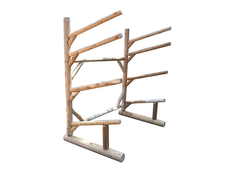 We want you to enjoy your Log Kayak Rack for years to come. To ensure it’s longevity, we recommend that the feet are not in direct contact with the ground, but rather raised and set on landscaping block or a similar product.