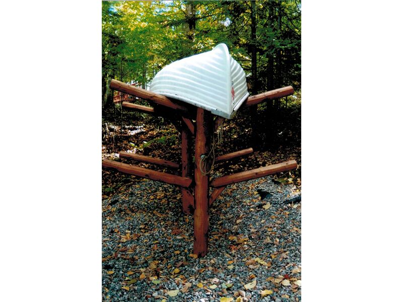 Our ground buried kayak racks are perfect for uneven, steep shorelines and hillsides. The 4 Place Kayak Rack is constructed from Northern White cedar which is rated best for weather resistant. Each rack has 4 5/8 inch post and feet and 3 in rails. Each rack is glued, bolted, and screwed with galvanized screws. Joinery where arms meet posts are 2 inch mortise and tenon giving full strength. Kayak Rack comes disassembled, but is very simple to put together with the torque-bit found in assembly kit and a cordless drill or the like.
