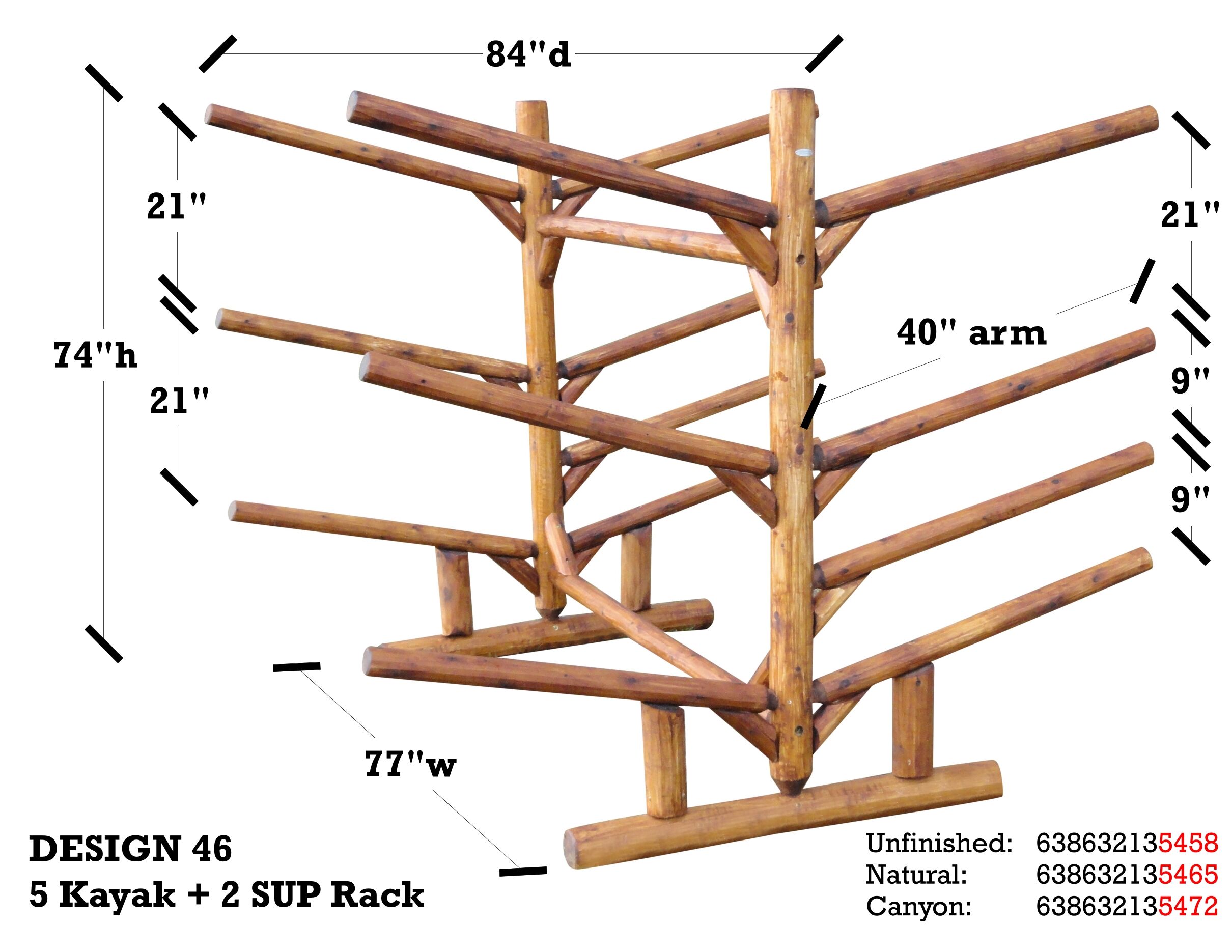 - Holds 5 Kayak/Canoe + 2 SUP/Surfboards Log Rack
