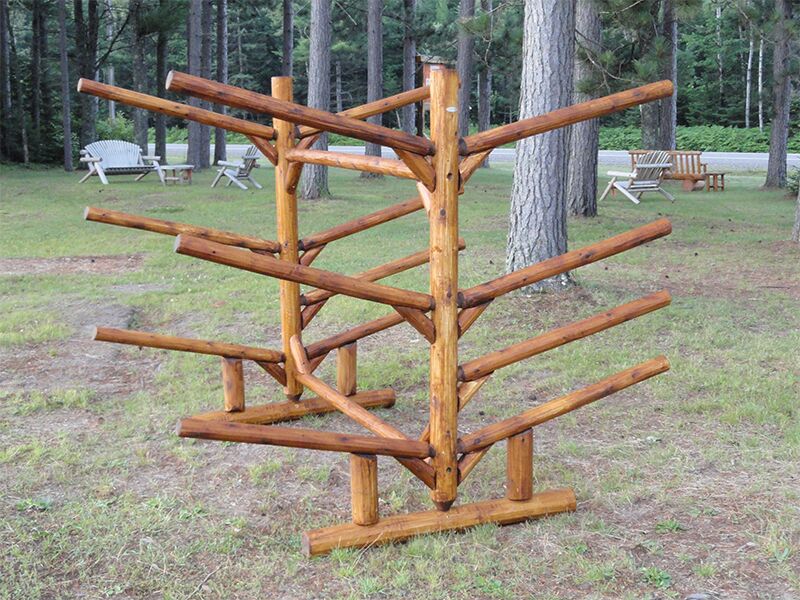 We want you to enjoy your Log Kayak Rack for years to come. To ensure it’s longevity, we recommend that the feet are not in direct contact with the ground, but rather raised and set on landscaping block or a similar product.