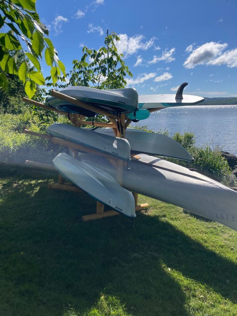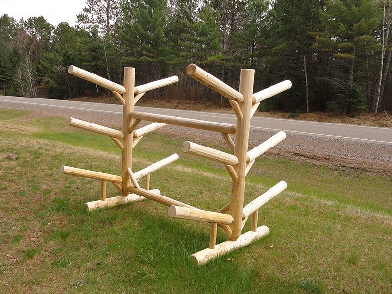 Love my log Kayak rack! Bought it for our lake house. It holds 2 Canoes, 2 Kayaks, a Paddle Board and all of the paddles, perfectly displayed and accessible on our shoreline. Easy to use and looks great!