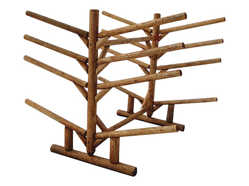 We want you to enjoy your Log Kayak Rack for years to come. To ensure it’s longevity, we recommend that the feet are not in direct contact with the ground, but rather raised and set on landscaping block or a similar product.
