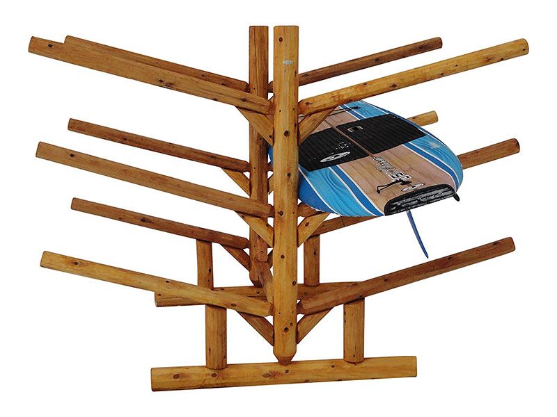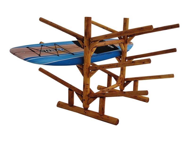 “Love my log Kayak rack! Bought it for our lake house. It holds 2 Canoes, 2 Kayaks, a Paddle Board and all of the paddles, perfectly displayed and accessible on our shoreline. Easy to use and looks great!”
