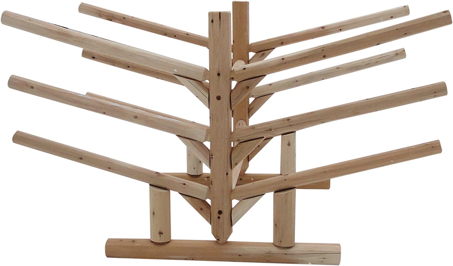 With finishing options, you can match dock, house, etc… or let it turn silver/gray with no finish, or you can use your own finish if so desired. This rack holds the heaviest of Canoes, Surfboards, Kayaks, and SUPS (Stand Up Paddle-boards). Each boat can weigh up to 100 pounds. This rack has up to a 400-pound capacity. We have worked with logs for over 23 years crafting log homes, furniture, and kayak racks. Each joint is glued and screwed for longevity. We use glued mortise-and-tenon joinery wherever possible. Hand made and finished by Log Artisans in Northern Wisconsin.
