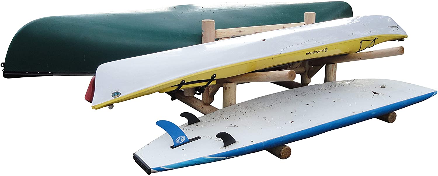 We want you to enjoy your Log Kayak Rack for years to come. To ensure it’s longevity, we recommend that the feet are not in direct contact with the ground, but rather raised and set on landscaping block or a similar product.