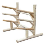 A Free Standing Storage unit for kayaks, canoes and stand-up paddle boards is a great solution for cabins, resorts and waterside restaurants and businesses because they are extremely durable yet completely portable. You can keep all of your personal watercraft organized, displayed and protected right by the water’s edge. We handcraft each storage rack out of northern white cedar logs that are very weather resistant. White Cedar can last beautifully indoors or out for up to 25 years.